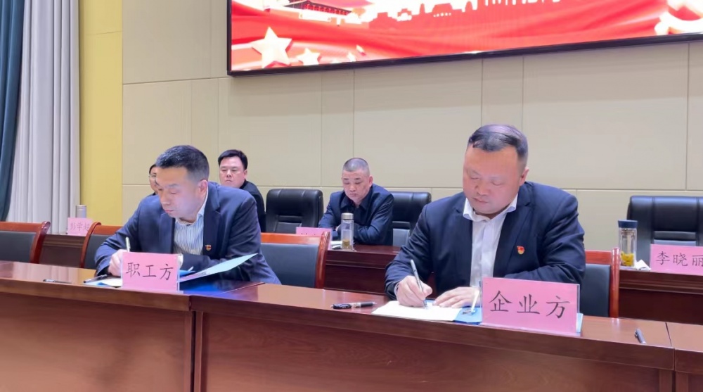 會(huì)上,企業(yè)方代表與職工方代表簽訂了《集體合同》。
