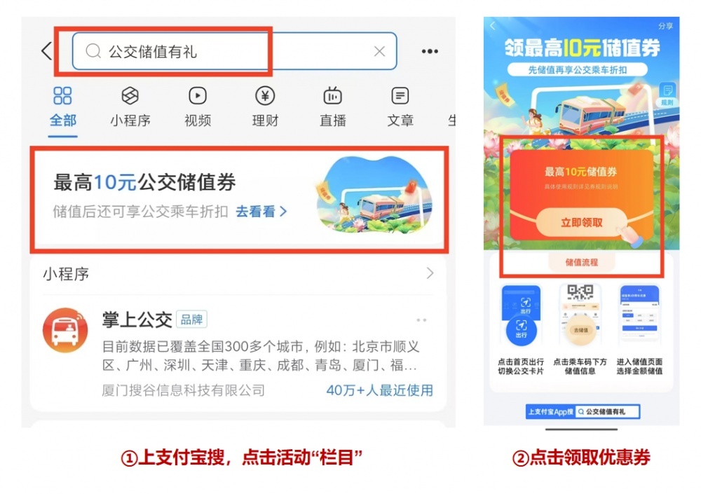 如何領(lǐng)取【儲值立減券】:活動期間,上支付寶搜索【公交儲值有禮】或掃描下方二維碼,進入活動頁面,點擊“立即領(lǐng)取“,即可免費領(lǐng)取公交儲值優(yōu)惠。