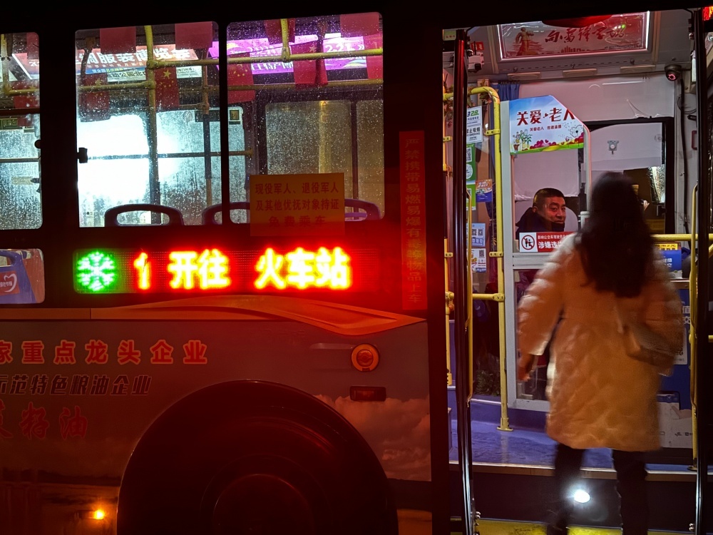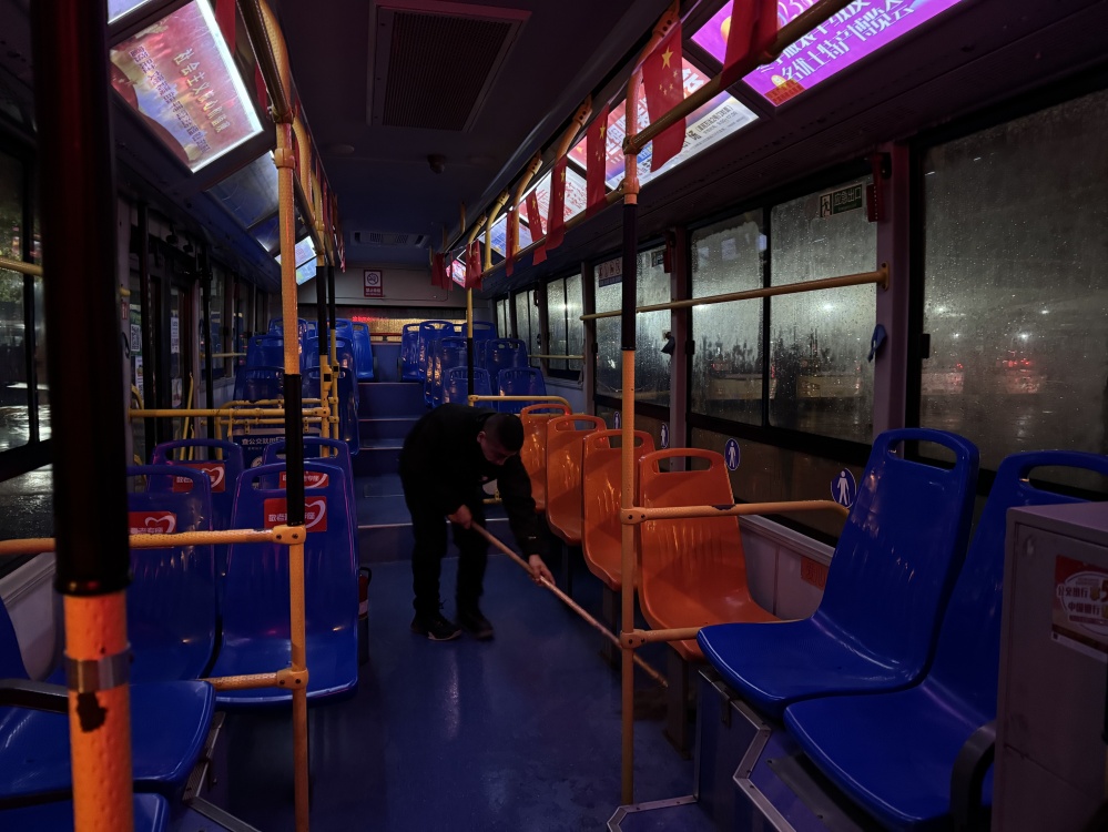 圖/雨夜時(shí)的末班車,顯得格外冷清,但面對(duì)乘客時(shí)的笑容,可以消除寒冷