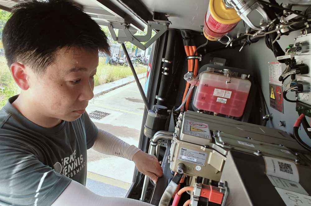 大太陽底下,他仔細檢查每一處,就為了保障公交車能順順當當跑。